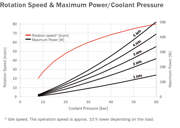 Hız Kafası, çok çeşitli çalışma koşullarıyla soğutma sıvısı/yağ veya hava sisi tahrikli türbin teknolojisini kullanır. Yataklar ve türbin, bir montaj cihazı kullanılarak kesme aleti sapına kolayca presle oturtulur ve çeşitli takım şaft boyutlarını (16-20-22-25mm) destekleyebilir.